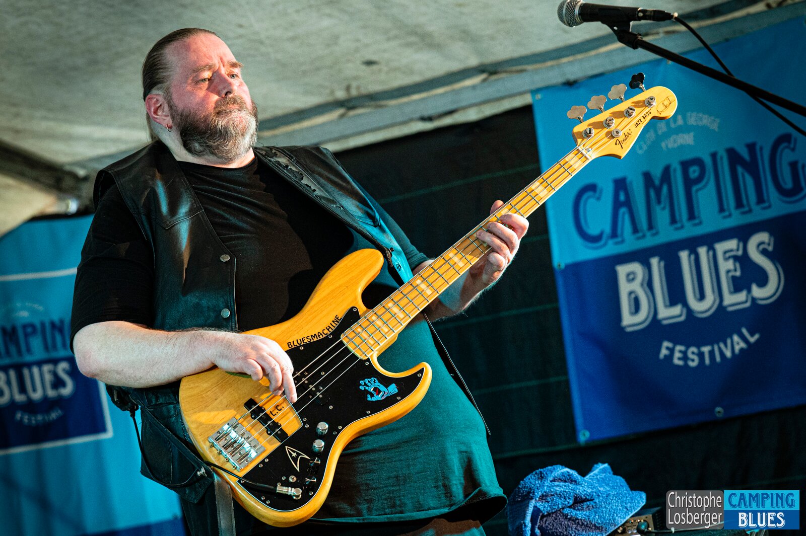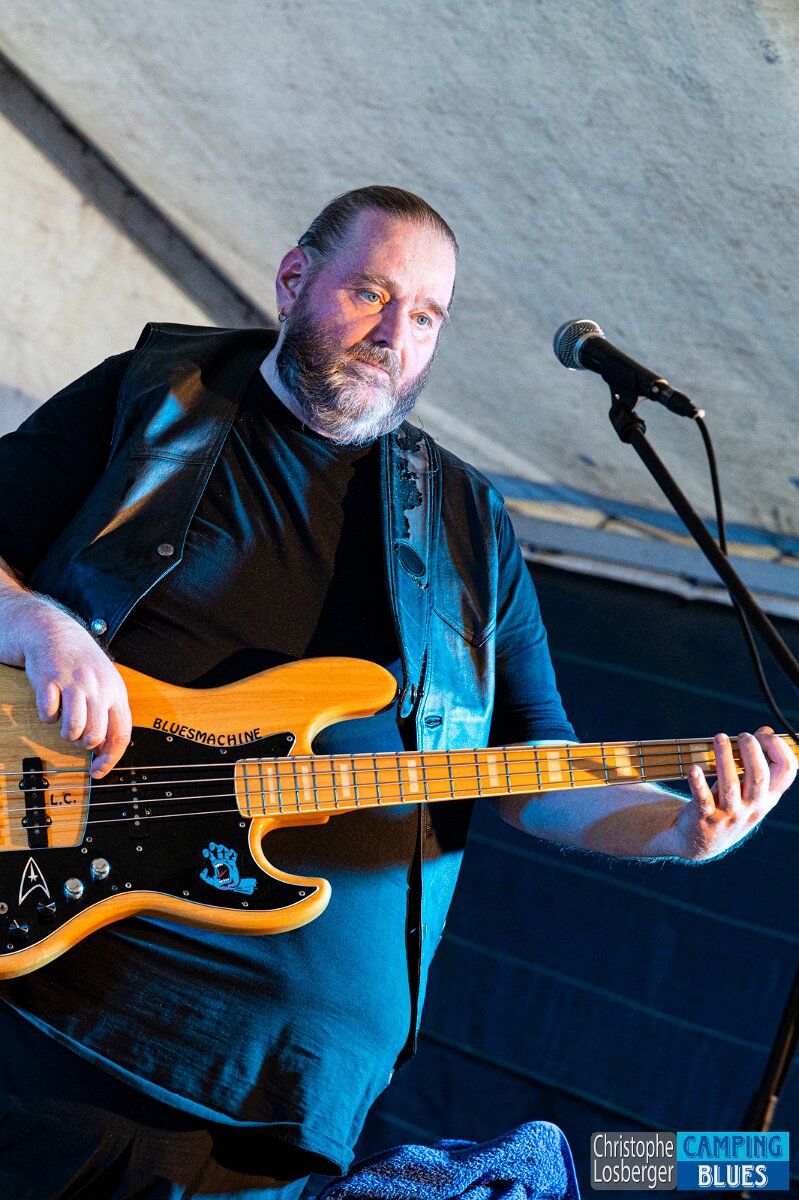 Thomas "Elsi" Elsasser (bass). Bluezballz @ Camping Blues Festival, Clos de la George, Yvorne (VD), Switzerland, 21.06.2025. .(c) Christophe Losberger