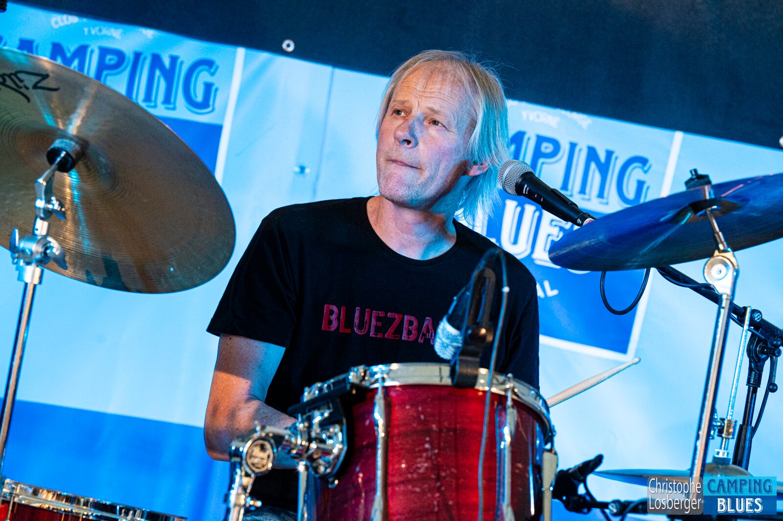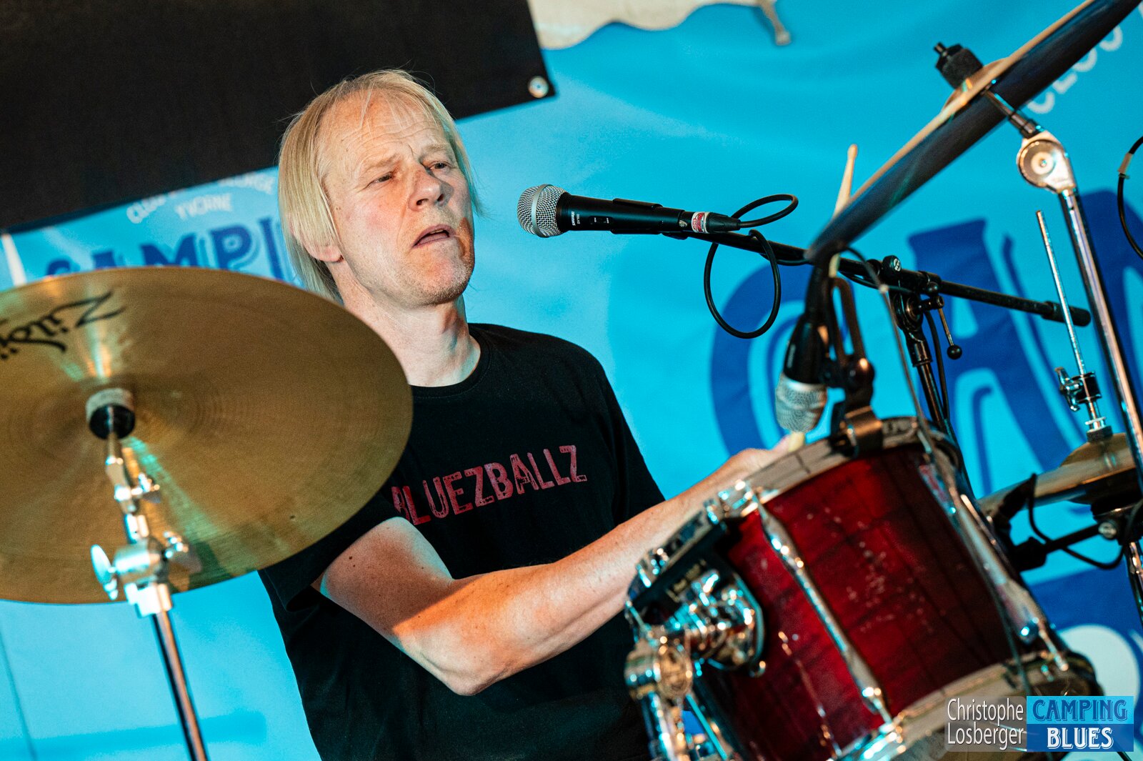 Peter ("Hori") Horisberger (drums). Bluezballz @ Camping Blues Festival, Clos de la George, Yvorne (VD), Switzerland, 21.06.2025. .(c) Christophe Losberger