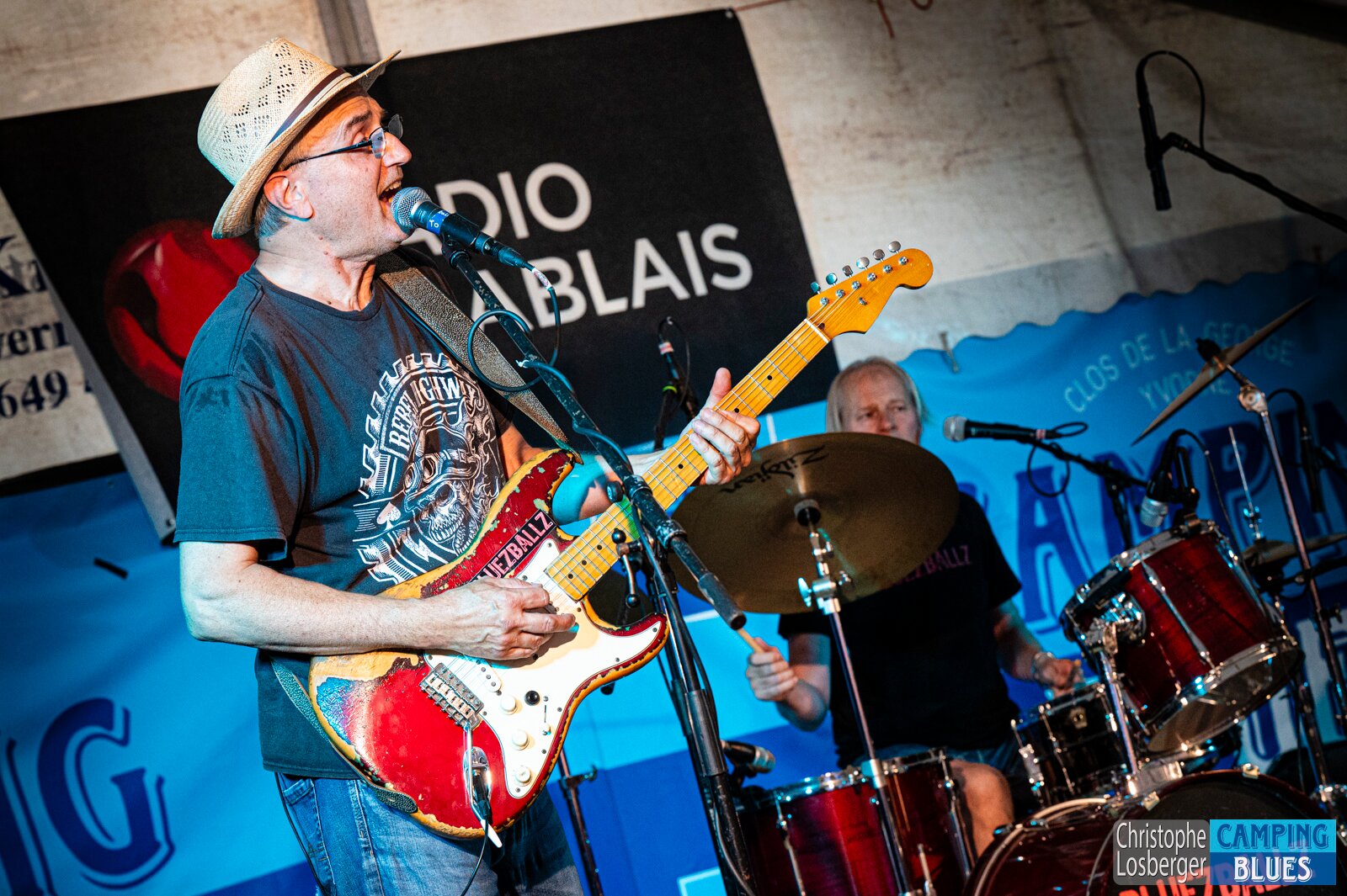 Jan "Buki" Bukacek (guitare, vocals), Peter ("Hori") Horisberger (drums). Bluezballz @ Camping Blues Festival, Clos de la George, Yvorne (VD), Switzerland,…