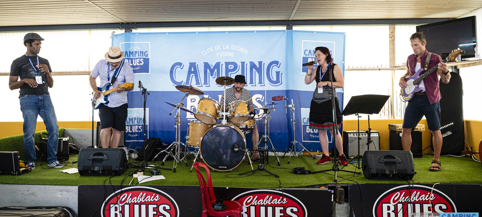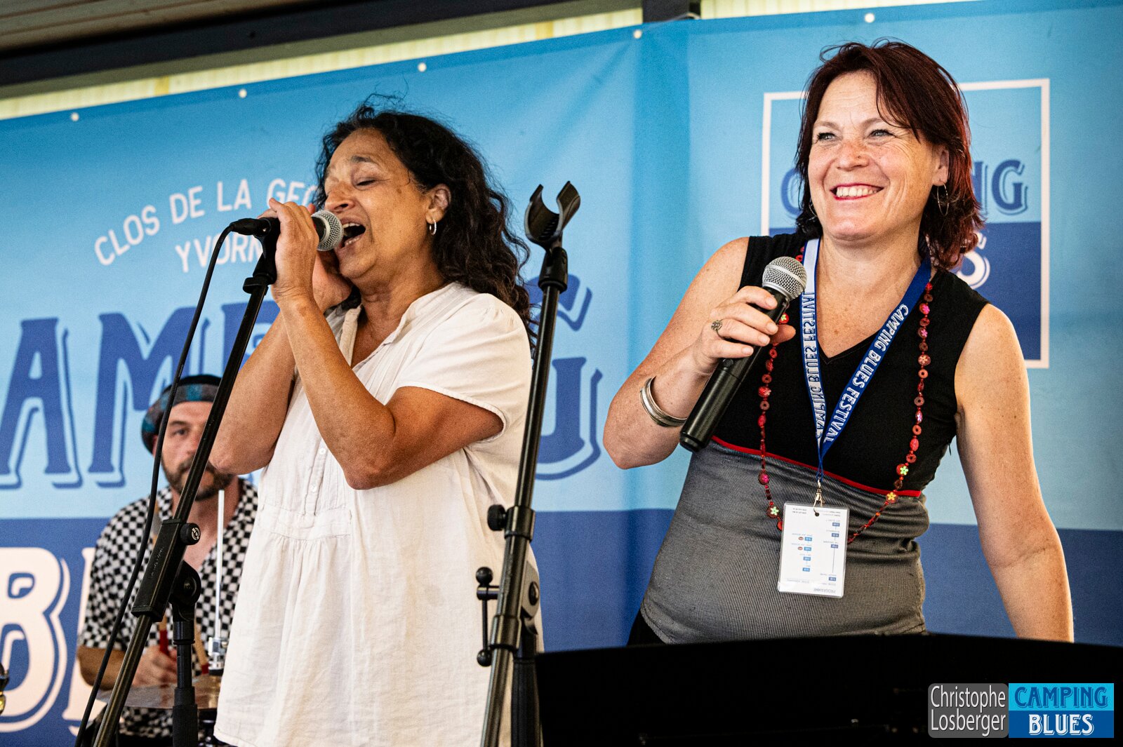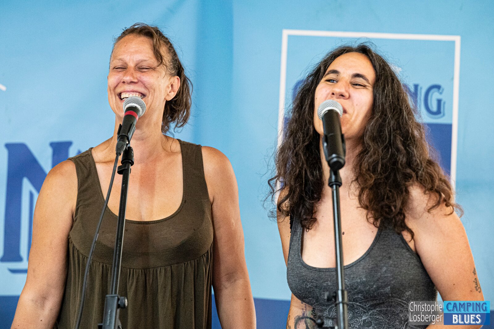 Stephanie Albuquerque (vocals), Marion Fontana (vocals) . Jam Session avec Pepper Blues @ Camping Blues Festival, Clos de la George, Yvorne (VD), Switzerland,…