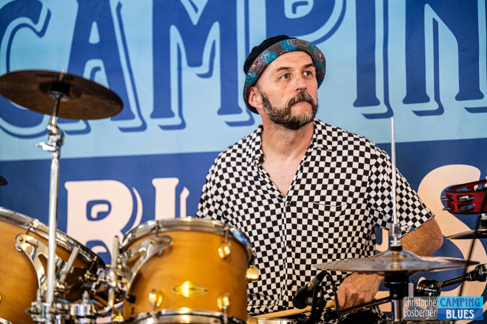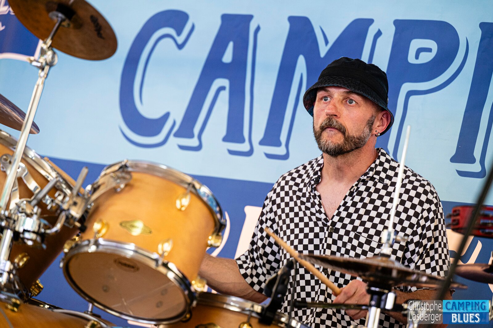 Yves Brasey (drums). Jam Session avec Pepper Blues @ Camping Blues Festival, Clos de la George, Yvorne (VD), Switzerland, 21.06.2025. .(c) Christophe Losberger