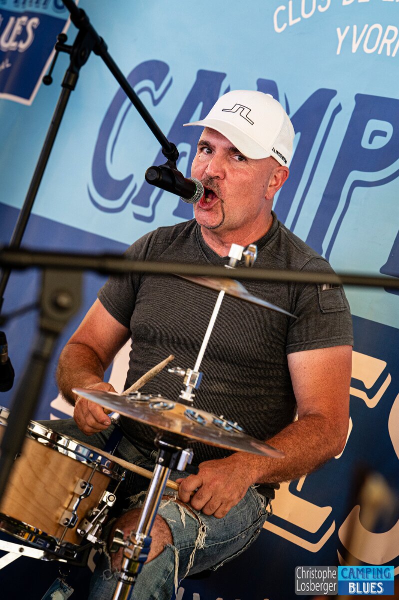 Eric Dubauloz (drums). Wet Rugs @ Camping Blues Festival, Clos de la George, Yvorne (VD), Switzerland, 21.06.2025. .(c) Christophe Losberger