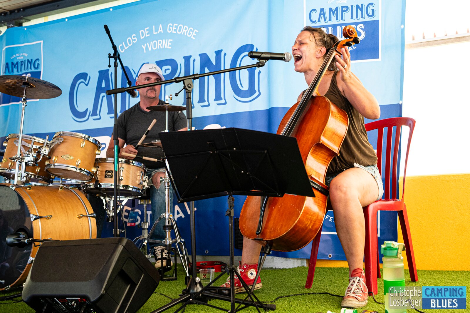 Heike Wyler (cello, vocals), Eric Dubauloz (drums). Wet Rugs @ Camping Blues Festival, Clos de la George, Yvorne (VD), Switzerland, 21.06.2025. .(c) Christophe…
